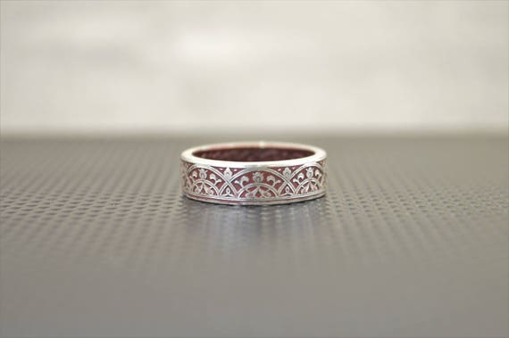 These rings are handcrafted using a copper nickel French Moroccan 25 Centimes Coin. This design was Issued only 1921-1924 they feature a beautiful ornate pattern that to me resembles a stain glass design that will be on the outside of the ring. The inside of the ring has the lettering: EMPIRE CHERIFIEN الدولة المغربية which translates as Moroccan Empire. You can see the coin these are made from in the first photo.