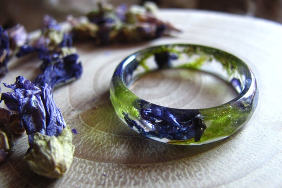 Nature Ring, Flower Ring, Terrarium Ring, Floral Resin Ring, Botanical Jewelry, Purple Ring Pressed Flower Jewelry Gardening Gift for Women by AlpacaBlue