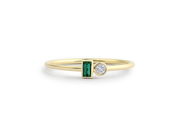 Reserved for Virginie / Dainty Emerald Baguette and Round SapphireRing /