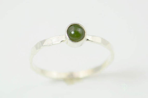 This petite jade ring makes a modern fashion statement! This thin pure silver band is set with a 4mm Natural Nephrite Jade cabochon. This green jade ring is beautifully worn alone or worn together in clusters with my other stacking rings.