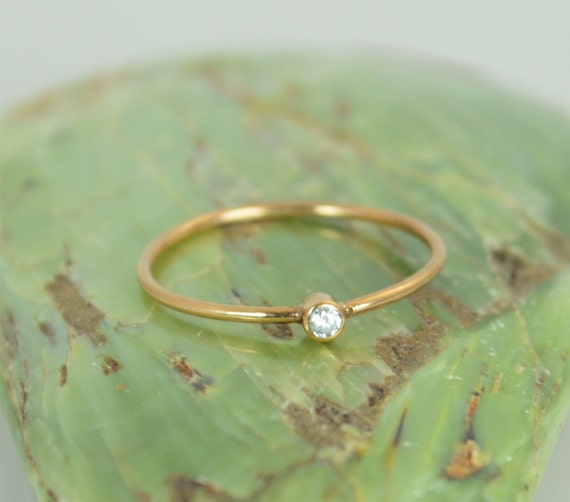 Tiny CZ Diamond Ring, Solid Rose Gold Diamond Stacking Ring,...