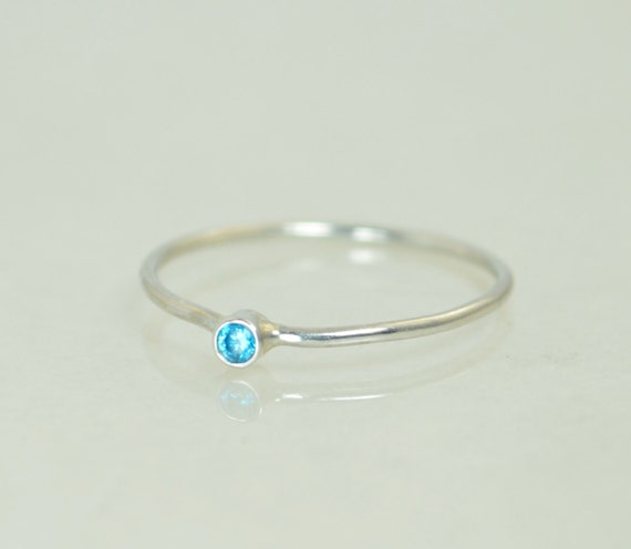 Blue Zircon Ring, White Gold Ring, Stacking Ring, Dainty Ring,...