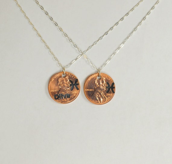 Pisces Necklace, Pisces Pendant, Birthday Necklace, Birthday Necklace, Pisces Birthday, Lucky Penny, Penny Necklace, Birthday Gift, Pisces by Alaridesign