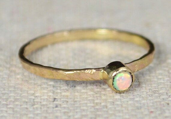 14k Gold Filled Opal Ring, 3mm gold solitaire, solitaire ring,...