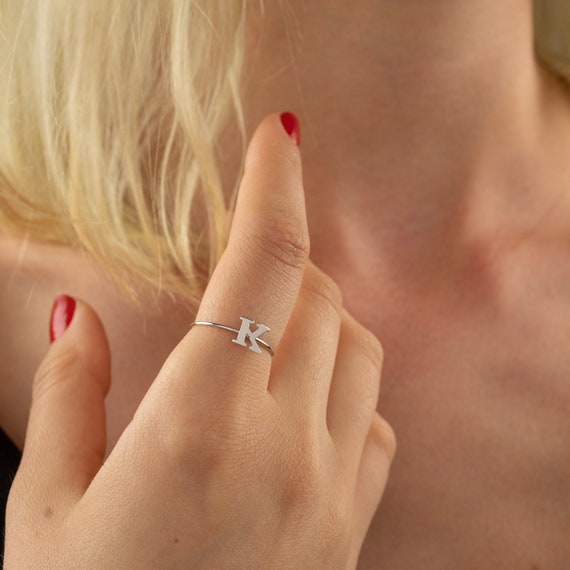 14K Solid Gold Letter Ring/ / Letter Ring/ Initial Gold Ring / Stackable Letter Ring/ Stackable Initial Rings/ Dainty Letter Ring by RobertoGoldDiamond