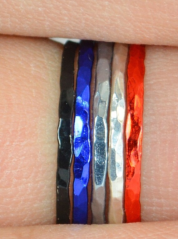 - Delicate hammered rings.