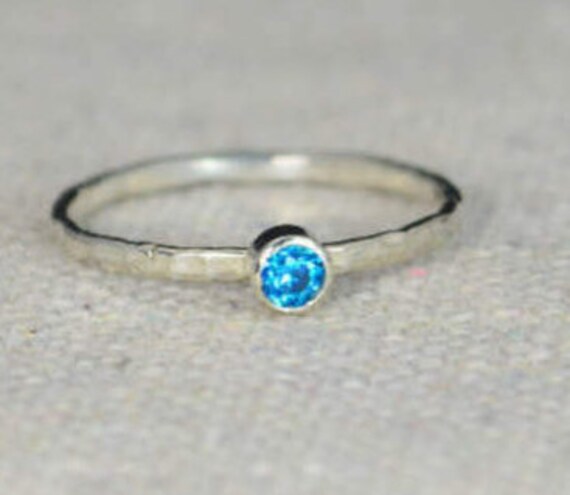 Classic Sterling Silver Blue Zircon Ring, 3mm Silver solitaire,...
