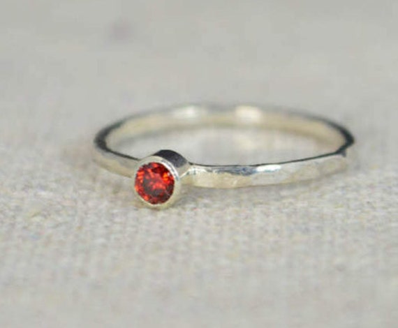 Classic Sterling Silver Garnet Ring, 3mm Silver Solitaire, Red Ring, Silver Jewelry, January Birthstone, Mothers Ring, Silver Band by Alaridesign