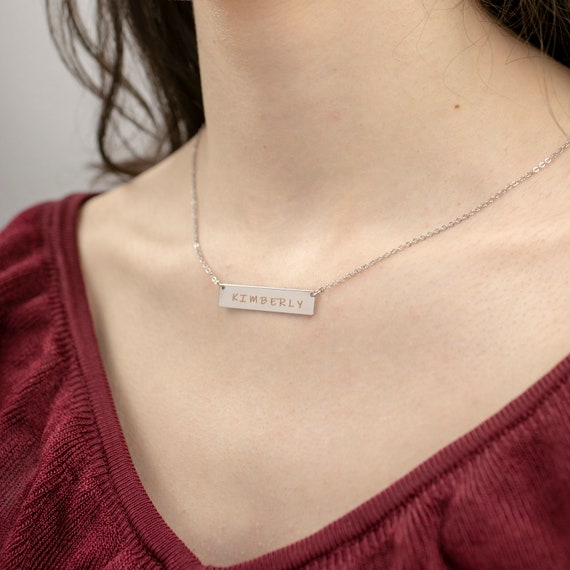 14K Solid Gold Bar Necklace, Silver Gold Rose Gold Necklace, Custom Bar Necklace, Personalized Bar Necklace