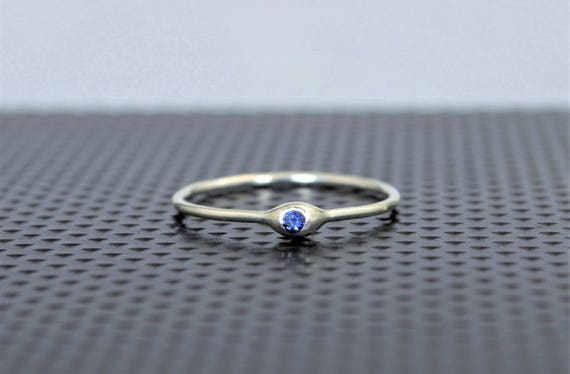 Dainty Sterling Silver Sapphire Mothers Ring, Sapphire Birthstone, Tiny Sapphire Ring, Dew Drop Ring, Stacking Ring, September Birthday Gift by Alaridesign