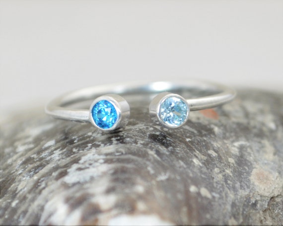 Dual Stone Ring, Cuff Ring, Silver Birthstone Ring, Stacking...