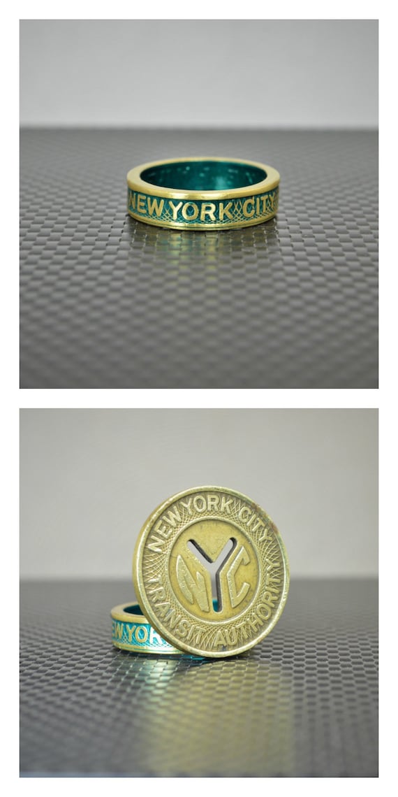 These rings are handcrafted using a genuine NYC Brass Subway Token.