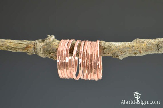 Set of 10 Thin Copper Stackable Rings, Copper Ring, Stack Ring, Arthritis Ring, Stacking Ring, Stackable Ring, Copper Band, Hammered Ring by Alaridesign