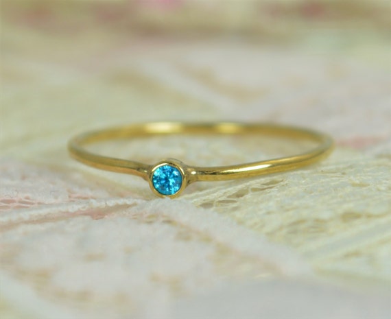 Tiny Blue Topaz Ring Set, Solid 14k Gold Wedding Set, Stacking...
