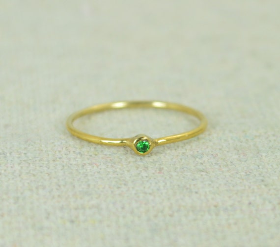 Tiny CZ Emerald Ring, Gold Filled Emerald Stacking Ring, Green...