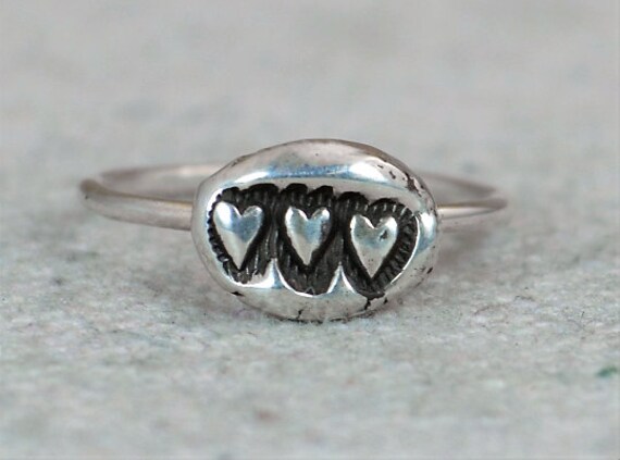 Unique Mothers Ring, 3 Heart Ring, Three heart ring, Tribal Ring, Bohemian Ring, Silver Ring, Sterling Ring, Stacking Ring, gypsy ring by Alaridesign
