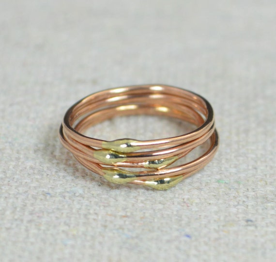 Unique Rose Gold and Solid 14k Gold Dew Drop Stacking Ring(s),Bimetal Ring, Hippie Ring, Gold Boho Rings, Gold Dew Drop Rings, Bohemian Ring by Alaridesign