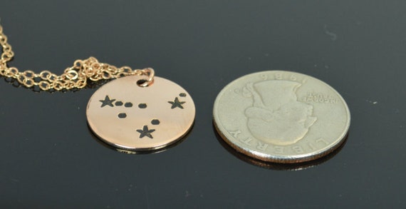 This pendant is created entirely in my studio, the Capricorn Constellation is deeply cut into the Rose Gold Filled pendant. Each pendant will be slightly different.