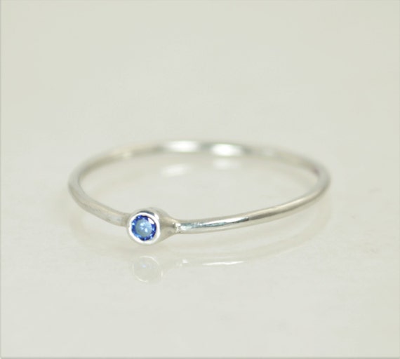Tiny Sapphire Ring, Sapphire Stacking Ring, White Gold Sapphire...