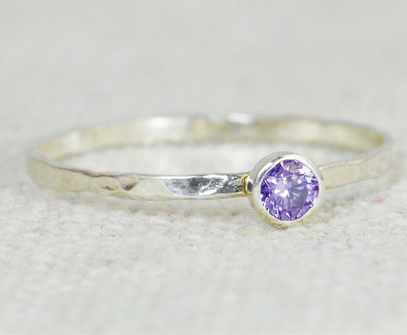 Dainty Amethyst Ring, Hammered Ring, Stackable Ring, February...