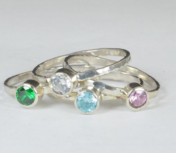 Looking for the perfect gift for yourself, your friends, or your dearest family Then these dainty little Pure Silver rings are sure to bring a smile to whoever’s hands they adorn. Each ring is customized with a lovely little gemstone that can hold a lot of sentimental value or they can be as simple as a favorite color; it’s really all up to you. Wear them as a stackable set, purchase them as bridesmaid’s gifts, or surprise your sweet mother or grandmother, or daughter with a set of rings. By getting a separate ring for each child each ring becomes extremely sentimental! Every time she wears this set she will smile!