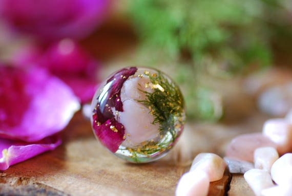 Pink Opal Ring Adjustable Stone Ring Rose Flower Ring Nature Moss Resin Ring Gemstone Ring Gypsy Ring Boho Ring Botanical Gift Christmas by AlpacaBlue