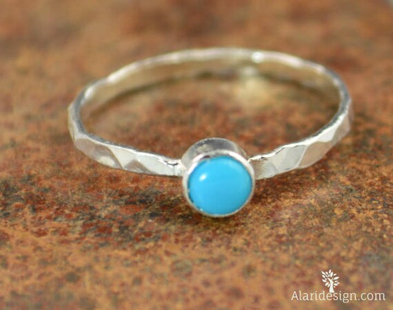 Small Silver Turquoise Ring, Pure Silver Turquoise Ring, Natural Turquoise Ring, Mothers Ring, Turquoise Jewelry, December Birthstone Ring by Alaridesign