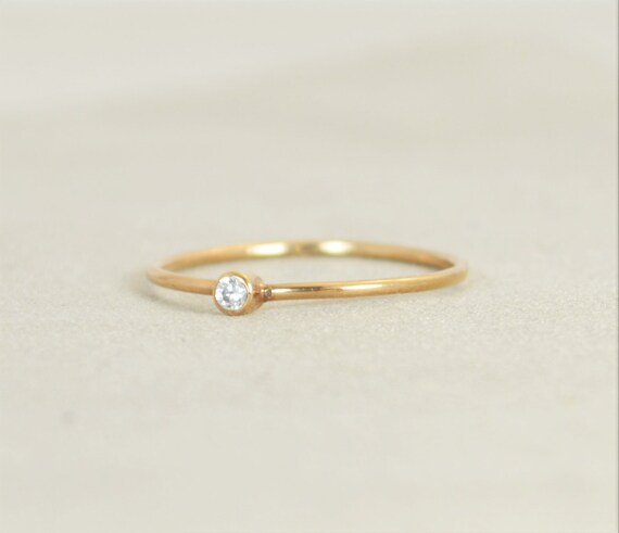 Tiny Rose Gold CZ Diamond Ring, Mother’s Ring, April Birthstone, Tiny Ring, Gold Ring, Dainty Ring, Stacking Ring, CZ Diamond Ring, Diamond by Alaridesign