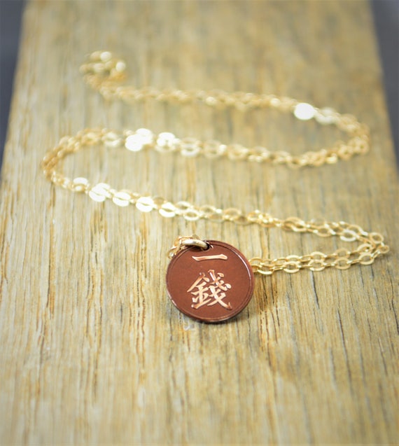 Japanese Coin Necklace, Brown Coin Necklace,Coin Art, Japanese Art, Bronze Coin, Japanese, Boho Necklace, Two-Sided,Coin Charm, Charm,Orient by Alaridesign