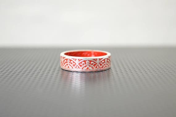 Moroccan Coin Ring, Red Coin Ring, Stained Glass Ring, Red Ring, Coin Art, Morocco, Silver Coin Ring, Moroccan Art, Boho Ring, Red by Alaridesign