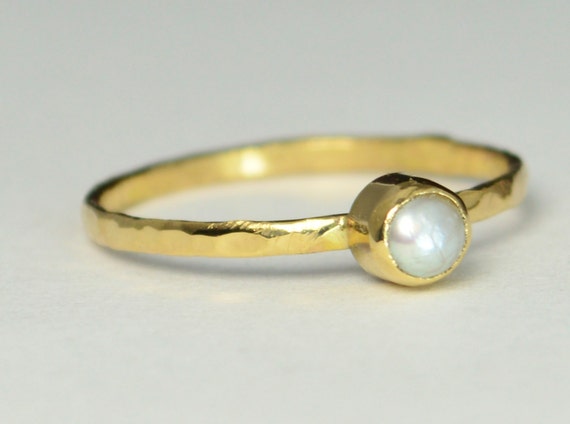 Classic Solid 14k Gold Pearl Ring, 4mm gold solitaire,...