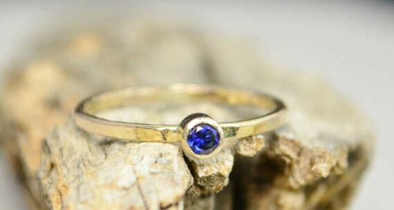 Classic Solid 14k Gold Sapphire Ring, 3mm gold solitaire,...