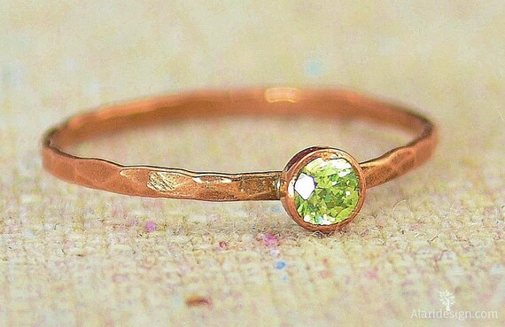 Dainty Copper Peridot Ring, Hammered Copper, Peridot Jewelry,...