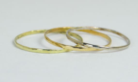This rings are the skinniest gold rings I make. Each stacking ring is made with 14k recycled gold.