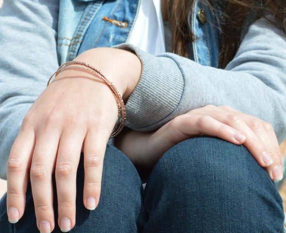 Thin Copper Bangle, Tree Bark Bangle, Thin Bangle, Stacking...