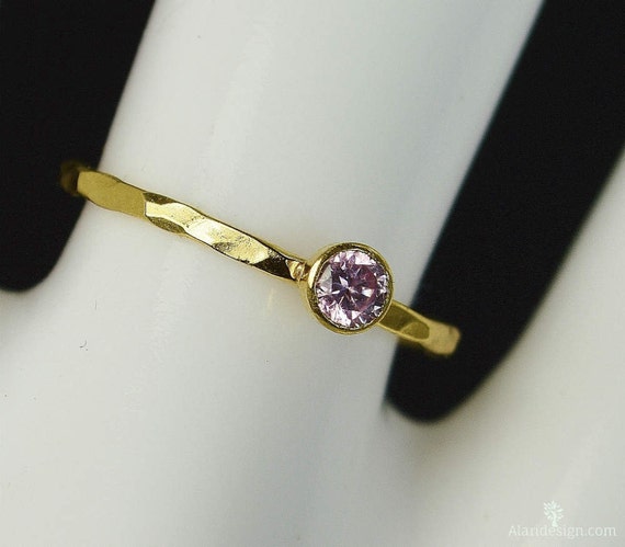 Dainty Solid 14k Gold Pink Tourmaline Ring, 3mm gold solitaire,...