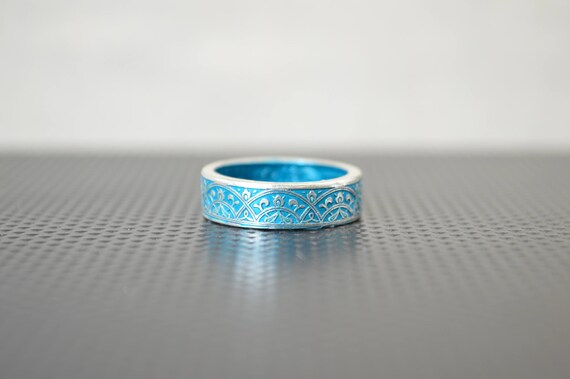 Moroccan Coin Ring, Turquoise Coin Ring, Stained Glass Ring, Turquoise Ring, Coin Art, Morocco, Silver Coin Ring, Moroccan Art, Boho Ring by Alaridesign