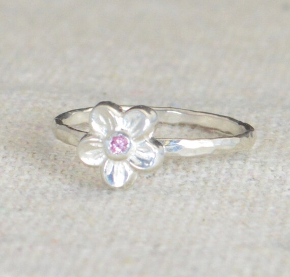 Small Flower Pink Tourmaline Ring, Silver Pink Ring, Flower Ring, Forget Me Not, Flower Jewelry, Sterling Flower Ring, Pink floral ring by Alaridesign