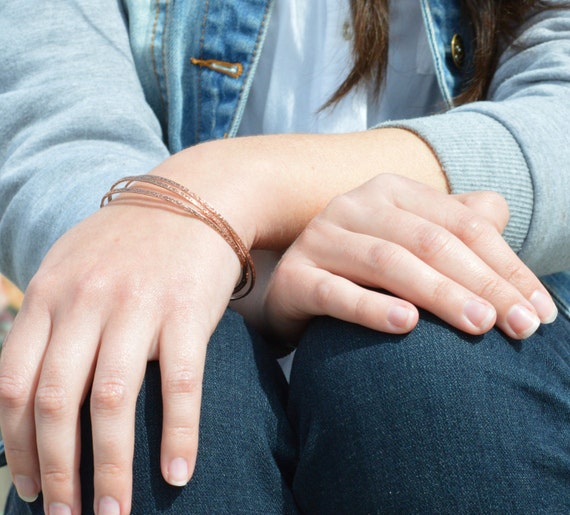 Thin Copper Bangle, Raw Silk Bangle, Thin Bangle, Stacking...