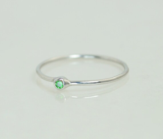 Tiny White Gold Emerald Ring, May Ring, Tiny Emerald, Stacking...