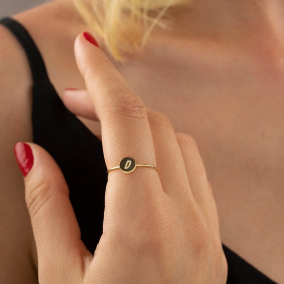 14k Solid Gold Initial Ring / Tiny Letter Ring / Stackable...