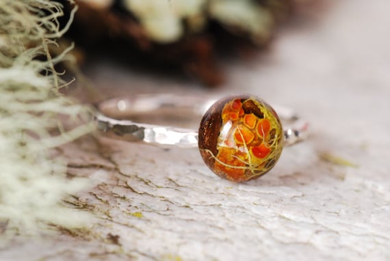 Silver Moss Ring, Lichen Nature Ring, Terrarium Sterling Silver Ring, Forest Ring, Botanical Jewelry, Rustic Resin Ring, Magic Jewelry by AlpacaBlue