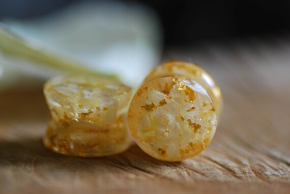 White Rose Plugs, 24k Gold Gauges, Wedding Plugs, Flower Gauges, Nature Earrings, Pressed Flower Earrings, Resin Flower Piercing Rose Gauges by AlpacaBlue