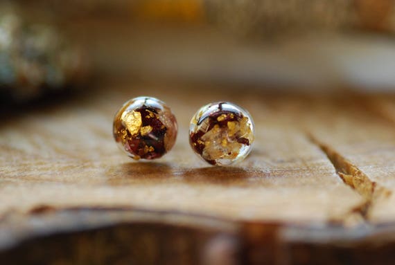 Poppy and Jasmine Resin Stud Earrings with gold Flakes
