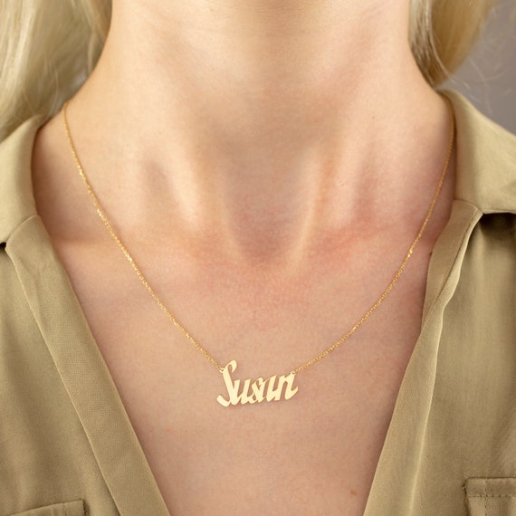 14K Solid Gold Name Necklace, Personalized, Custom by...